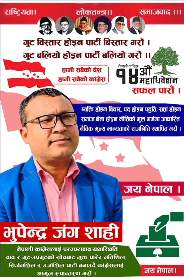संस्थापनइतर समूहबाट युवा नेता भूपेन्द्रजंग शाही र पूर्वसांसद दीपकजंग शाह आकांक्षी छन् । केन्द्रीय सदस्य हृदयराम थानीको संयोजकत्वमा टिम निर्माण गर्ने कार्यदल बनेको छ । बुधबारसम्म सभापति उम्मेदवारको टुंगो लगाउने गरी काम भइरहेको समूहका एक नेताले बताए ।