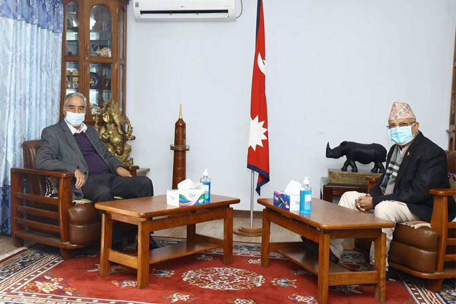 प्रधानमन्त्री शेरबहादुर देउवासँग प्रमुख प्रतिपक्षी नेकपा (एमाले) का अध्यक्ष केपी शर्मा ओली भेटवार्ता गर्न बालुवाटार पुगेका छन्।